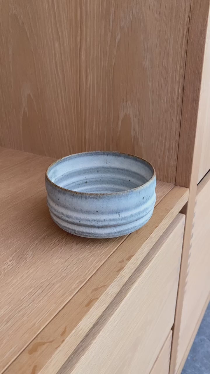 Matcha kop chawan i keramik - hvid og gråblå unika glasur - håndlavet