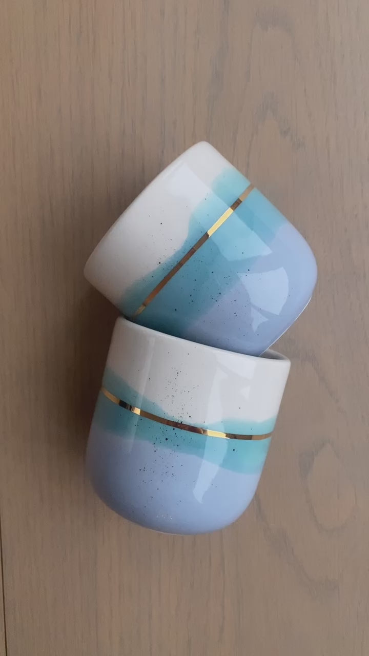 Sold outHåndlavet keramikkop i blå og lilla med guldstreg – Marinski HeartmadesDetaljebillede af Serenity koppen – keramik med håndmalet guldstreg